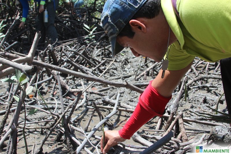 .@MiAmbientePma y estudiantes de Chame, realizan jornada de reforestación áreas de manglar.