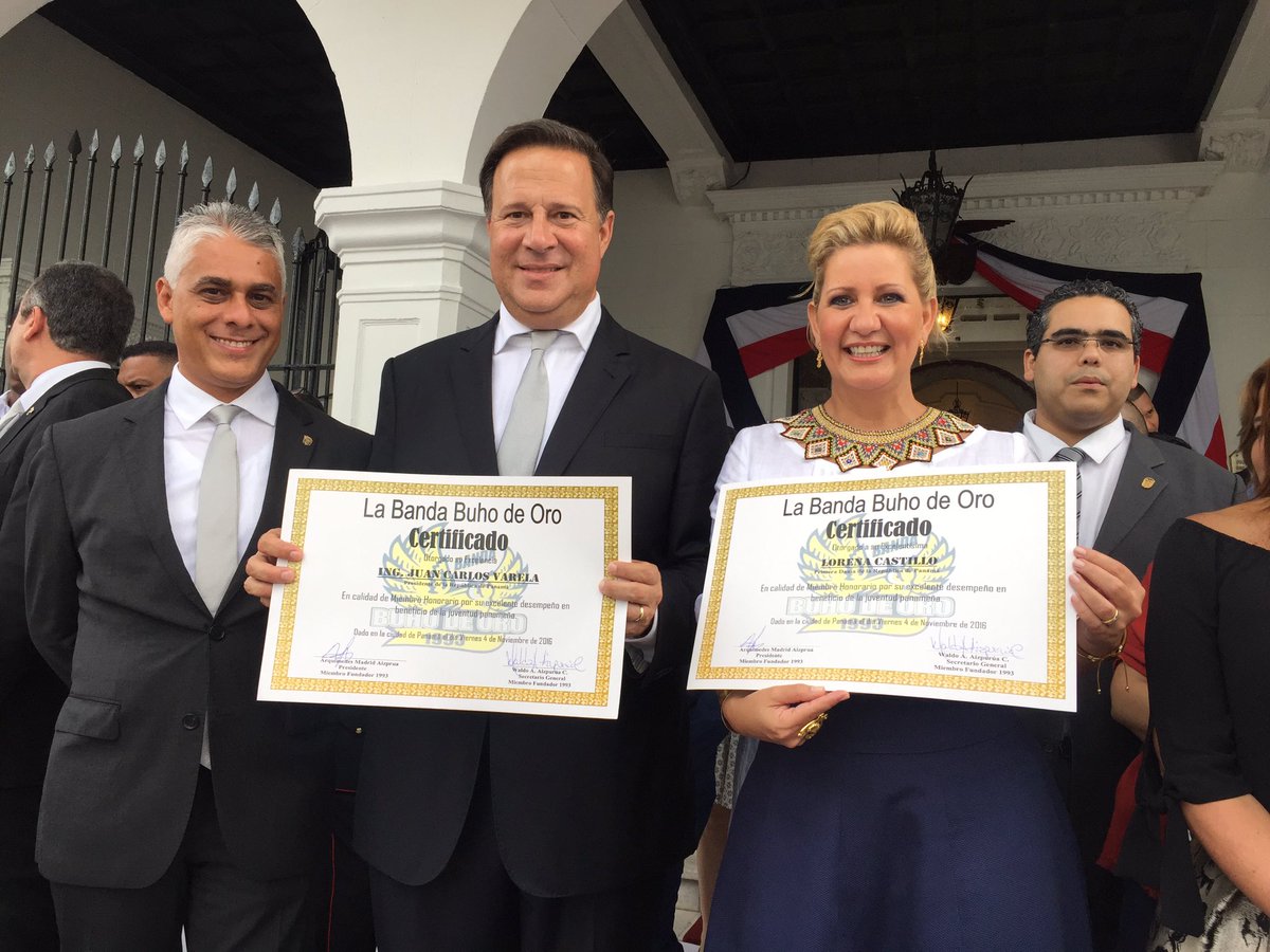 La emblemática Banda Independiente Búho de Oro entrega reconocimiento al Pdte. @JC_Varela y PD. @licastillo31 a su paso por la Presidencia.pic.twitter.com/BfKv5oyR3x