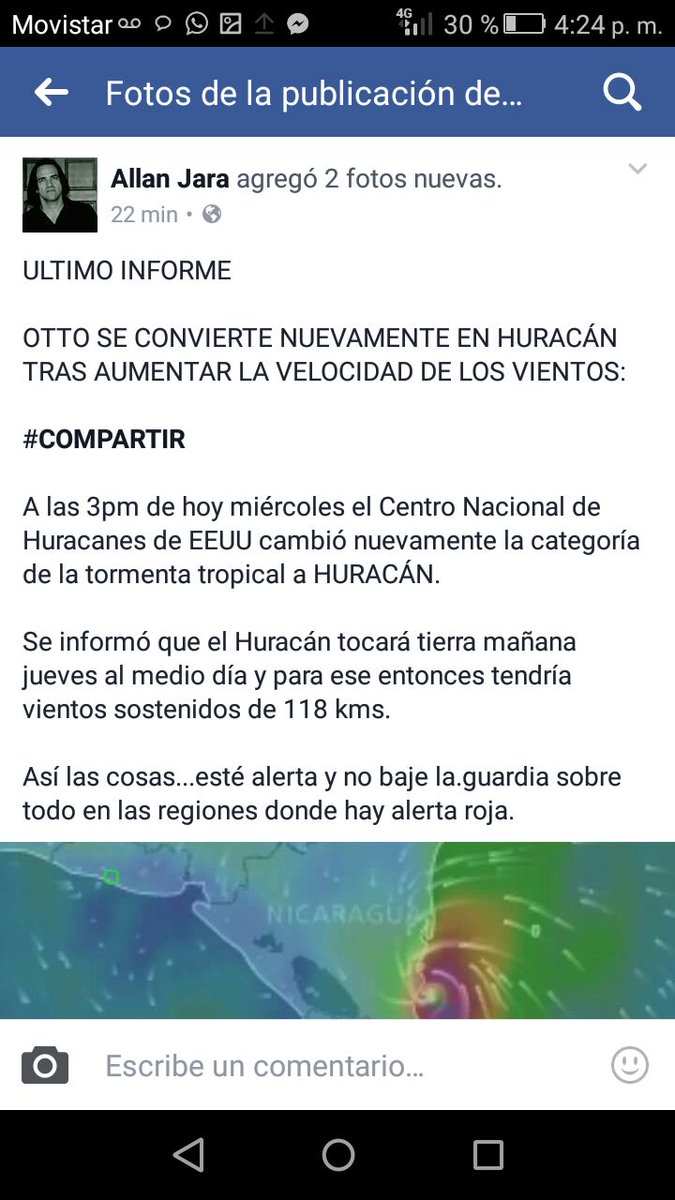 Como dicen que se debilito, si hace unas horas dieron un reporte de Costa Rica que Otto es categoria 2 de Huracan.