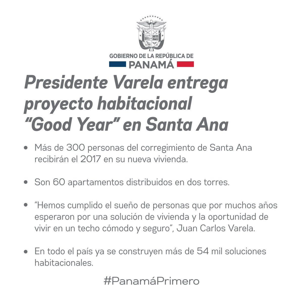 Presidente @JC_Varela entrega proyecto habitacional “Good Year” en Santa Ana.