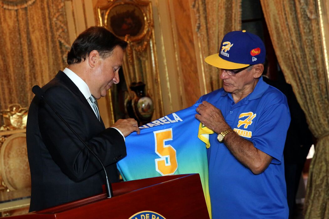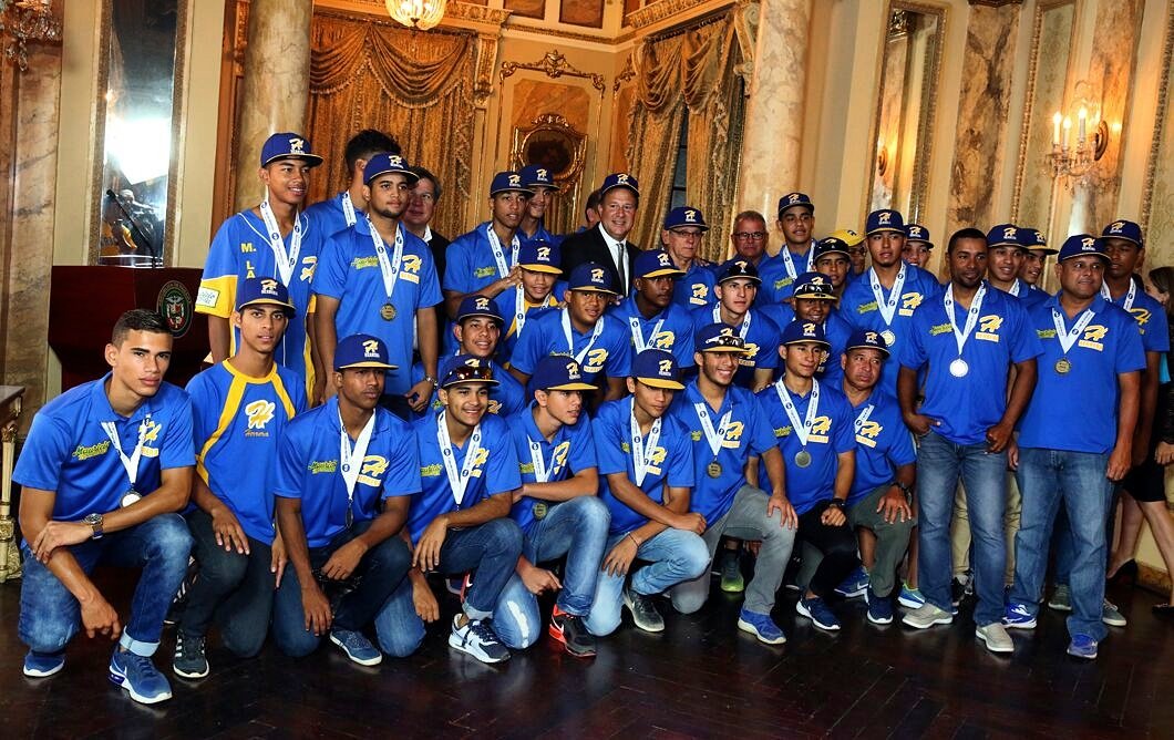 Presidente @JC_Varela recibe al equipo campeón de Herrera. #BéisbolJuvenil