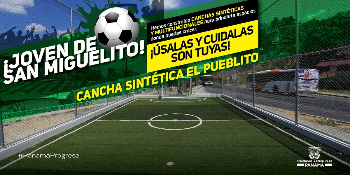 Ya están disponibles para ti, joven de San Miguelito, la Cancha Sintética El Pueblito. ¡Úsalas y cuidarlas, son tuyas!pic.twitter.com/BqYSyN2rbA