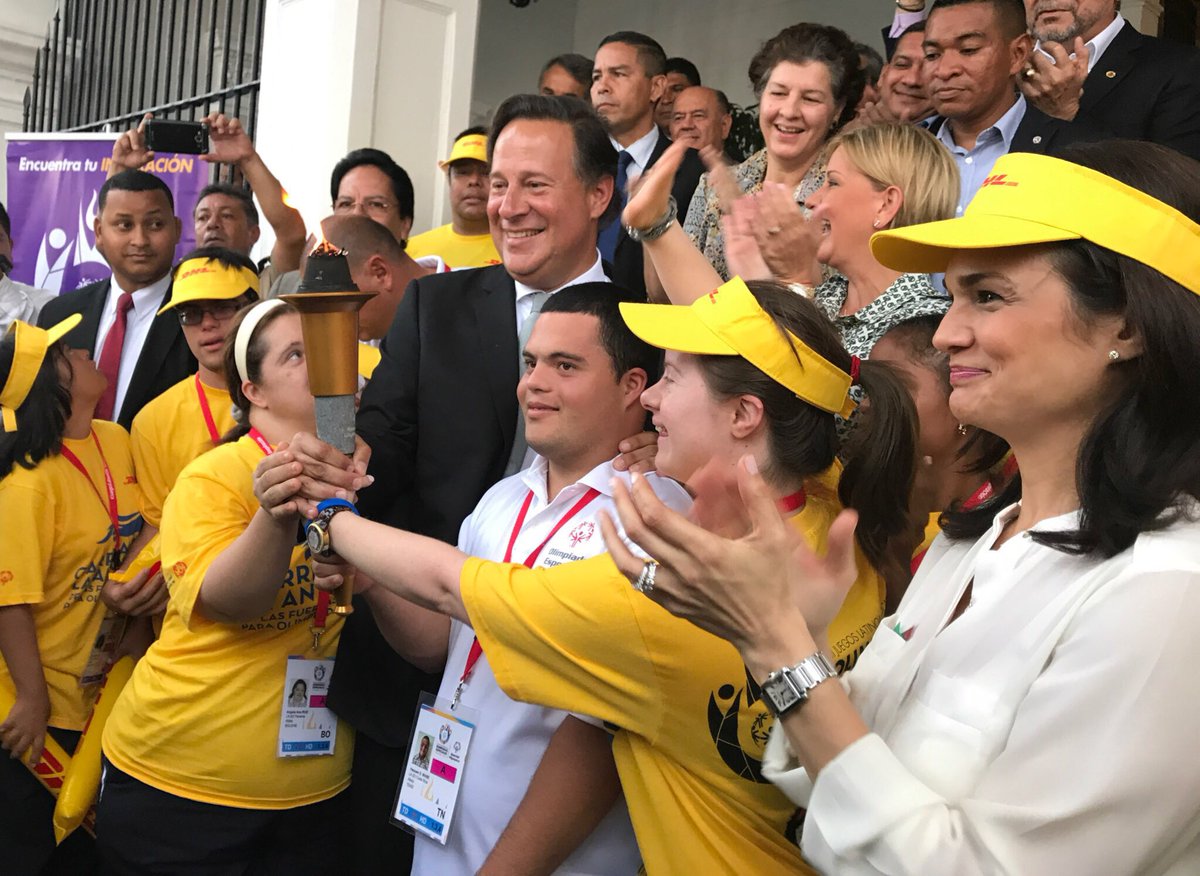 Presidente @JC_Varela junto a los atletas de #OEPanamá reciben la antorcha de #juegoslatamOE en la @PresidenciaPma. #CarreraDeLaAntorchapic.twitter.com/RN6xe7nAz1