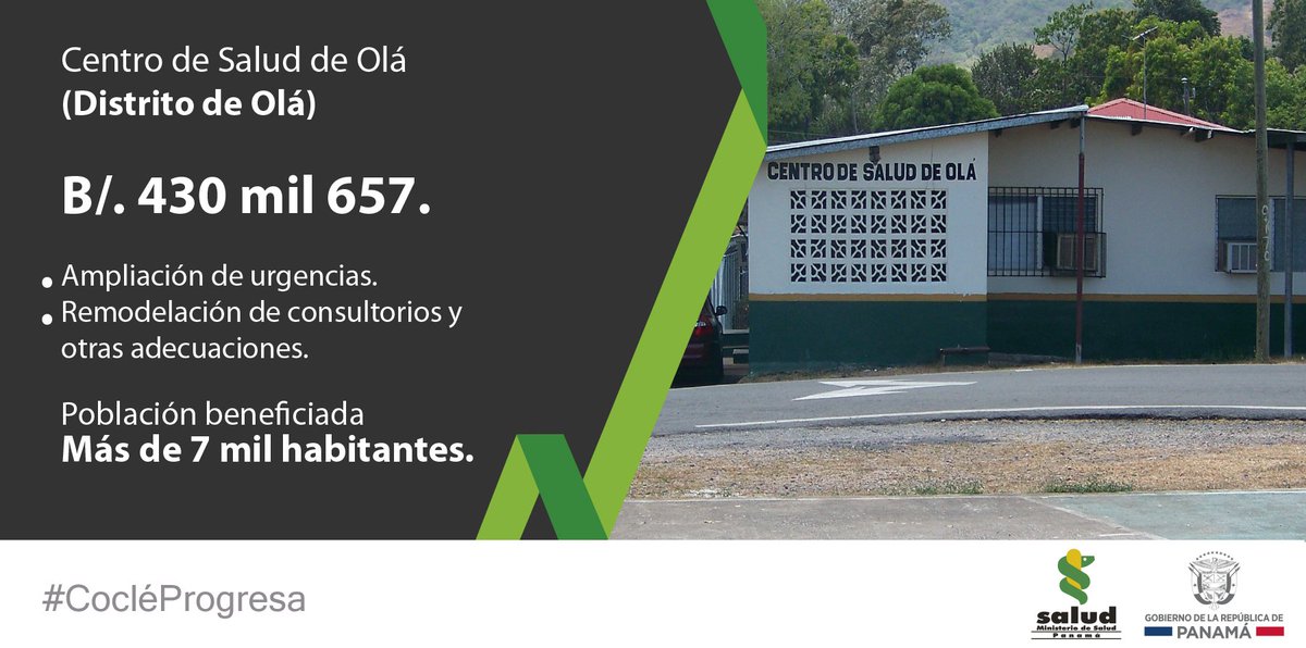 Ampliación del cuarto de Urgencias y mejoras para el Centro de Salud de Ola, donde se beneficiarán más de 7 mil coclesanos #CocléProgresa pic.twitter.com/d5k5XmWbWM