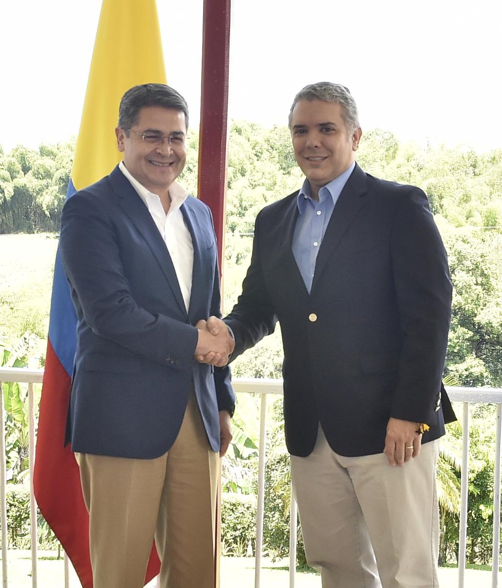 @JuanOrlandoH e @IvanDuque ya se encuentran reunidos en la Hacienda Cafetalera Villa Nora, una típica casa representativa de la cultura cafetera, en el municipio de Quimbaya, a pocos minutos de Armenia, la capital del departamento del Quindío. 🇭🇳 🤝 🇨🇴 #HondurasEnColombiapic.twitter.com/eA5AGgY1bu