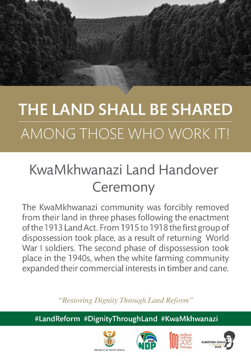 The KwaMkhwanazi community was forcibly removed from their land in three phases, following the enactment of the 1913 Land Act. #DignityThroughLand #LandReform #KwaMkhwanazipic.twitter.com/GA3KKiqUKq