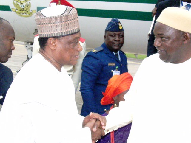 @BarrowPresident yesterday afternoon arrived in Nigeria for a two-day working visit. He was received upon arrival at the airport by the Nigerian Federal Capital Territory Minister, Muhammed Bello who also accompanied him to the State House, the Aso Rock. https://www.facebook.com/PresidencyGambia/ …pic.twitter.com/p6zxORUeu4