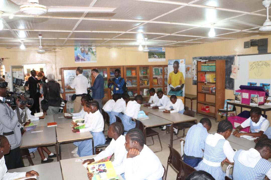 The Duchess of Cornwall and @FirstLady_GMB had intimate interactions with school children at St. Therese’s Upper Basic School. Her Royal Highness and Her Excellency saw kids that are aspiring to enter the Queen’s Commonwealth Essay Competition. #RoyalVisitTheGambiapic.twitter.com/OP14Ycjssi