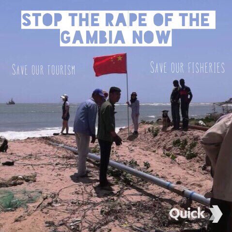 This is not development but an attack on our environment. Golden Lead Factory is provoking locals while installing new pipelines. Our fish stocks are already collapsing. What are we gonna do when all is polluted and all fish is gone? The chinese will just go, we live here #gambiapic.twitter.com/56FKrPaU8p