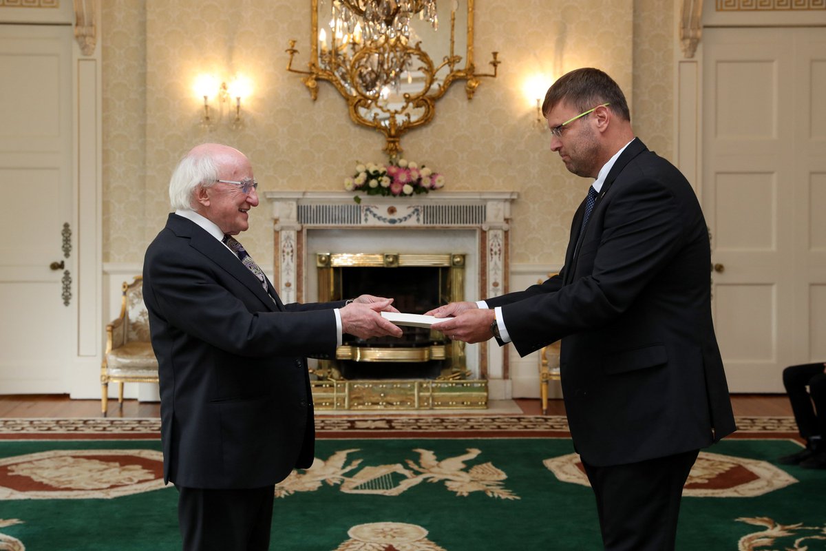 H.E. Mr. Ophir Kariv, Ambassador of Israel, H.E. Mr. Bradley Burgess, Ambassador of New Zealand and H.E. Mr. Gerano P. Pappalardo, Ambassador of Paraguay presented their Letters of Credence to the President of Ireland today. https://president.ie/en/diary/details/ambassadors-present-their-credentials1 …pic.twitter.com/hes9l2mTbL