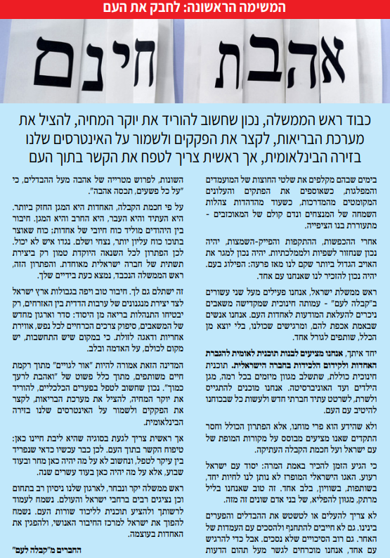 מסר לראש הממשלה