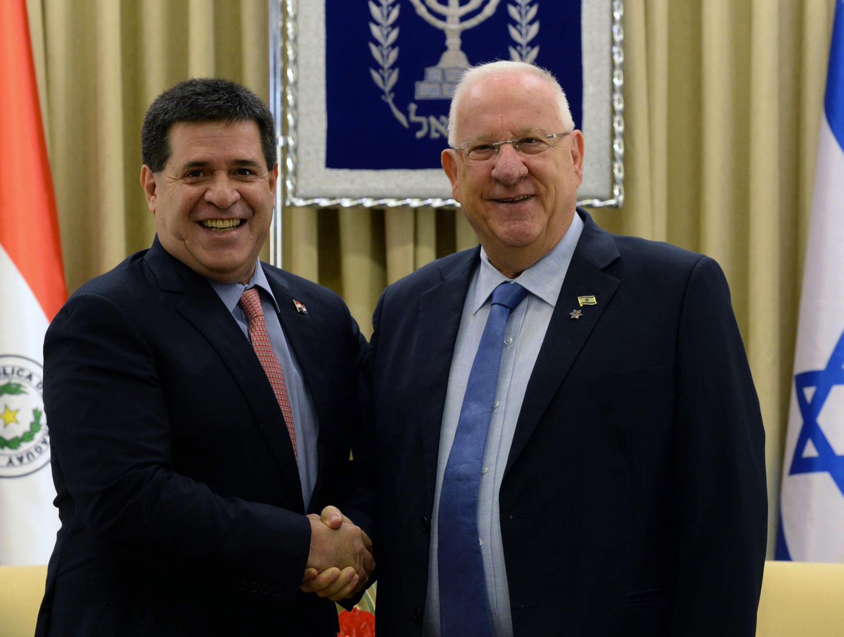 Delighted to welcome Pres. @Horacio_Cartes, on the first state visit to Israel by a Pres. of #Paraguay @IsraelinPYpic.twitter.com/ASIurH6CyJ