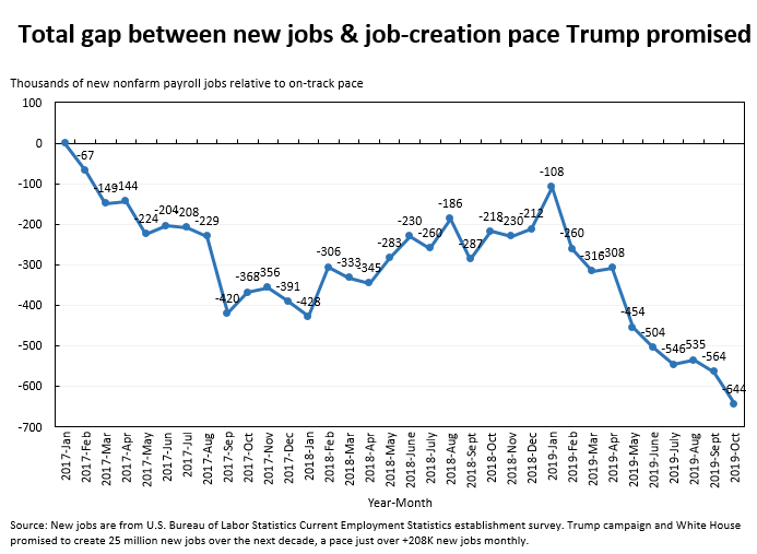 In reality, job growth has slowed a bit from the inherited pace. We started falling behind the promised pace the first month of the administration and never caught up. 644,000 more Americans would have jobs today if job growth matched POTUS's promised pace.pic.twitter.com/VasSlNbyjB