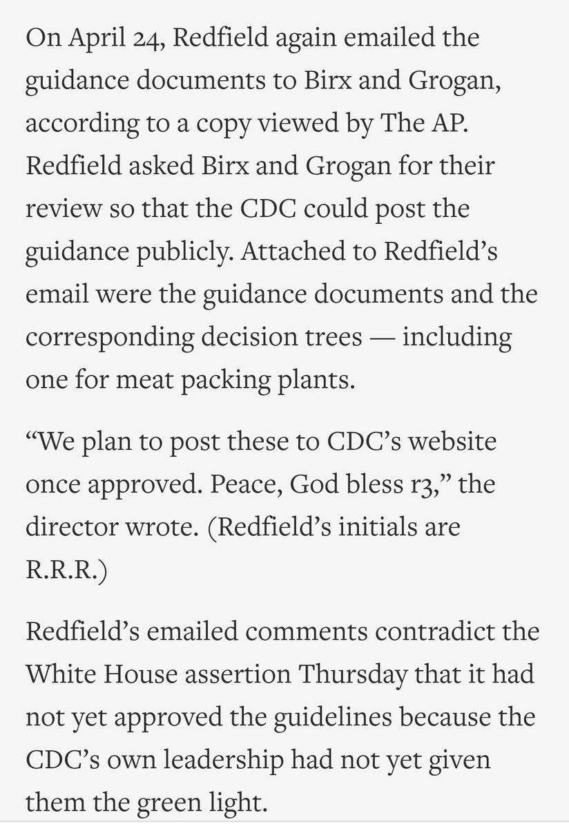 Cool so you got Dr. Redfield to lie to cover for you and the administration. Well done.