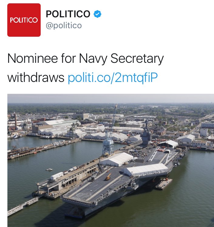 Hey Jerry! Looks like you were duped again by the Trump administration!https://www.navytimes.com/articles/report-philip-bilden-withdraws-from-navy-secretary-consideration …