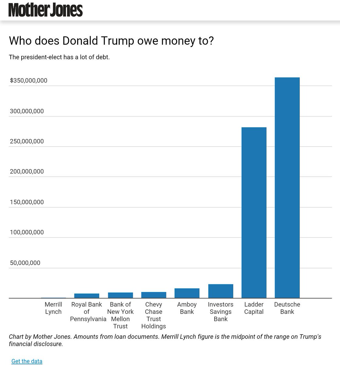 Trump reported a lot lower debt. N.Y. Attorney General prosecuted Deutsche Bank; fined it $10 Billion (Russian money) for money-laundering.