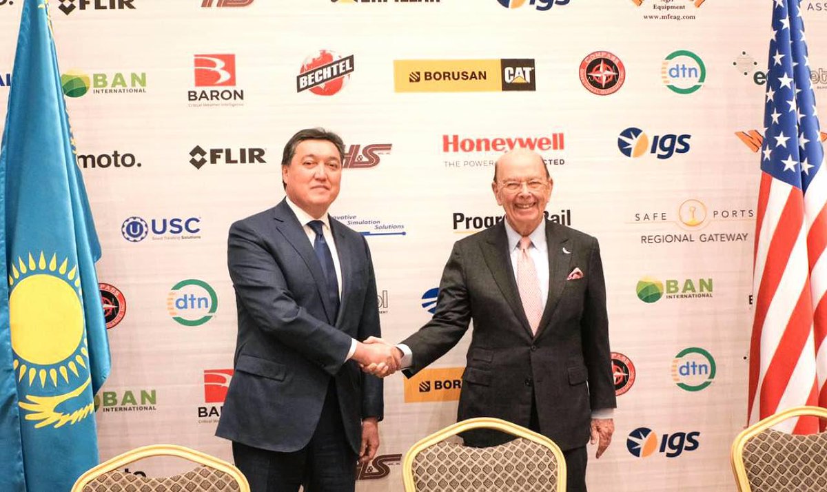 ҚР Премьер-Министрінің Бірінші орынбасары Асқар Мамин мен АҚШ сауда министрі Уилбур Росс бизнес-форумға қатысты http://s.pm.kz/vfeq pic.twitter.com/YHlOPsDdbl