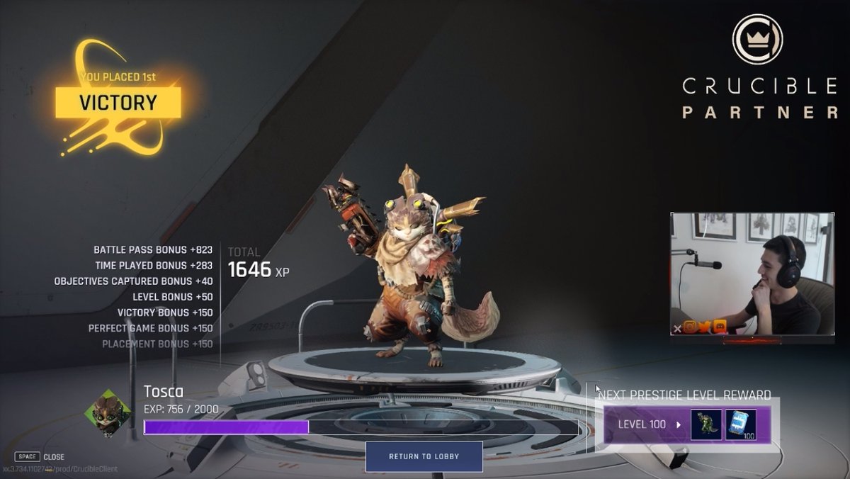 WE DID IT! World's FIRST Level 100 in @PlayCrucible . It took a 20hr stream followed by a 24hr stream to make it, but we made it! Couldn't have done it w/o my duo partners @Grettssu, @HeartbeatLoL, @Muffins_FNC, @MonsoonGG, @Zooseyboy, and CrucibleLlama!pic.twitter.com/cZ8HOZvnen