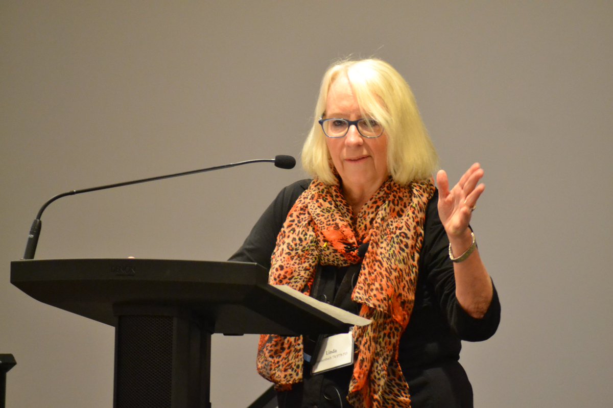 of #SheRoars18, attendees check in to "She Should Run," with Linda Frankenbach '74, @CampbellforD4 '04, @Lyncherator '05, Laura Ellsworth '80, and @NanHayworth '81.pic.twitter.com/LfYOJY6Pis