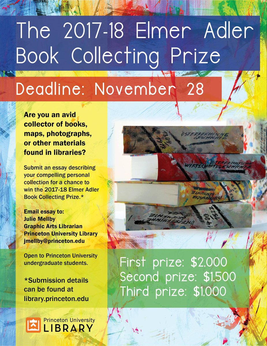 If you love to collect maps, books, or photographs and you’re a #PrincetonU undergrad, submit your essay describing your collection to @PULibrary by Nov. 28 for a chance to win the Elmer Adler Book Collecting Prize: http://ow.ly/ns5u50fiYc9 pic.twitter.com/D1F7EFRKsA