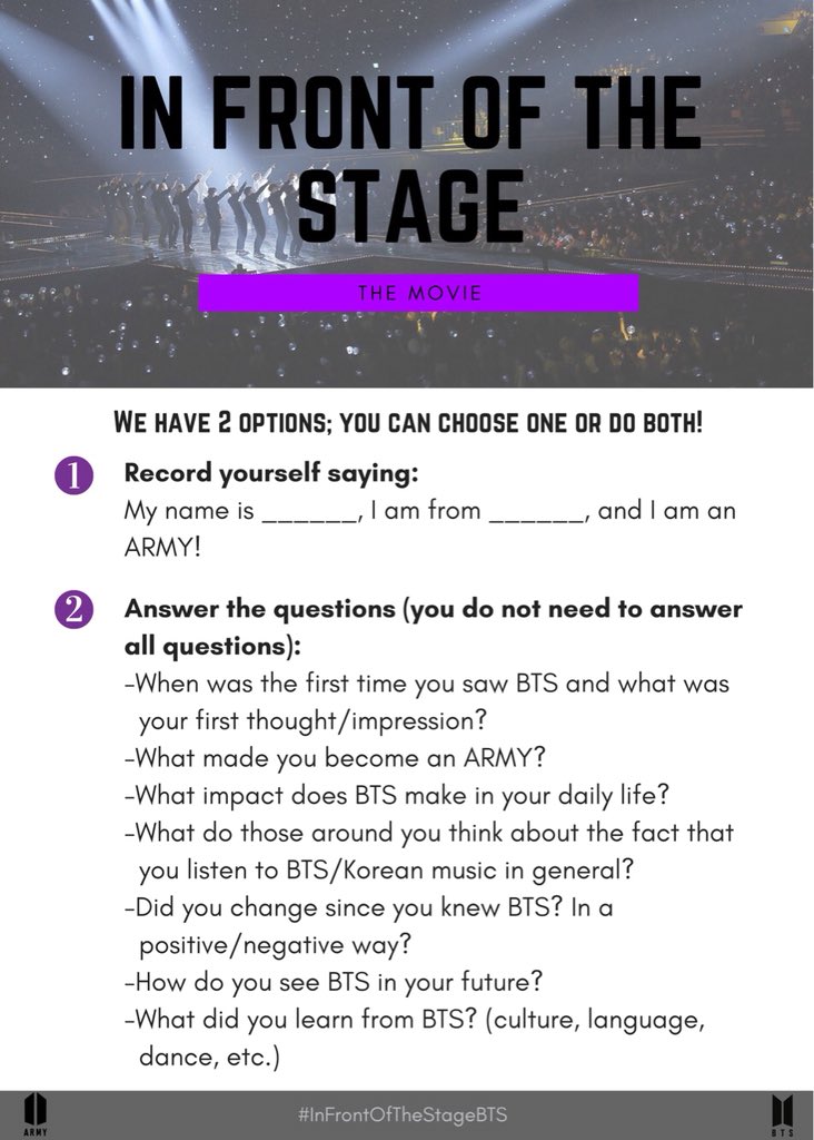 Mail your videos to infrontofthestagetm@gmail.com or post it on YouTube and send the link to @infrontofstage@BTS_twtpic.twitter.com/T4riwK8r8Y