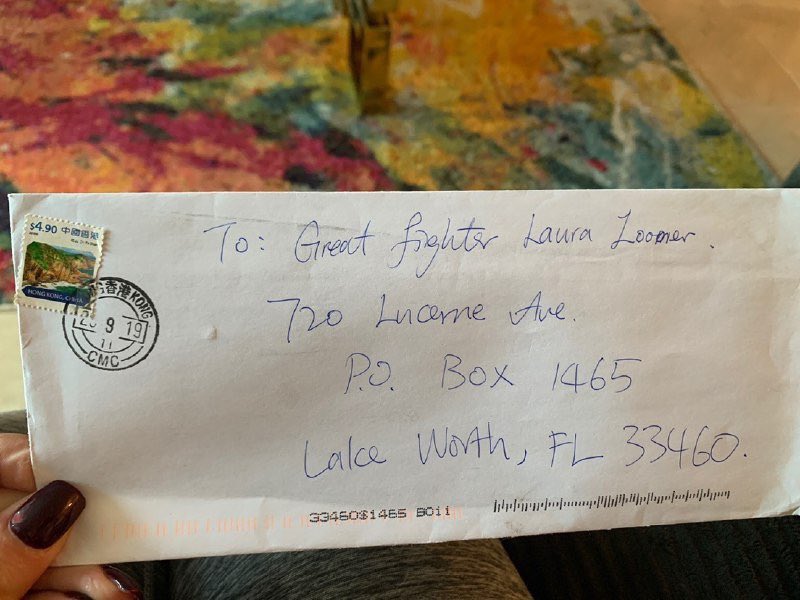 its fake she no doubt wrote it herself https://www.reddit.com/r/ChapoTrapHouse/comments/ait0u3/laura_loomer_writing_herself_letters/ …