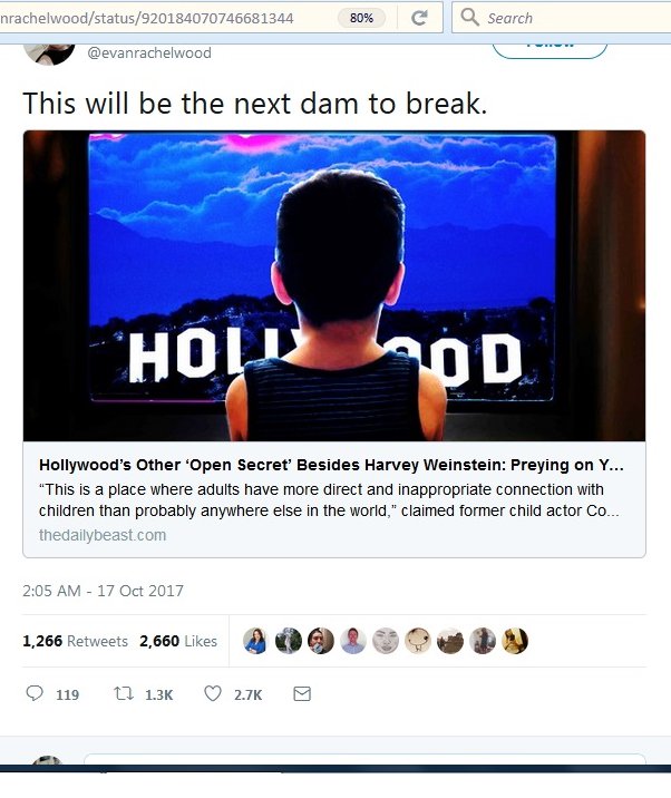 Weinstein is a big story that's a taste of an even bigger story. Once a couple more drop, the rest will come flooding in. Everyone knows it.