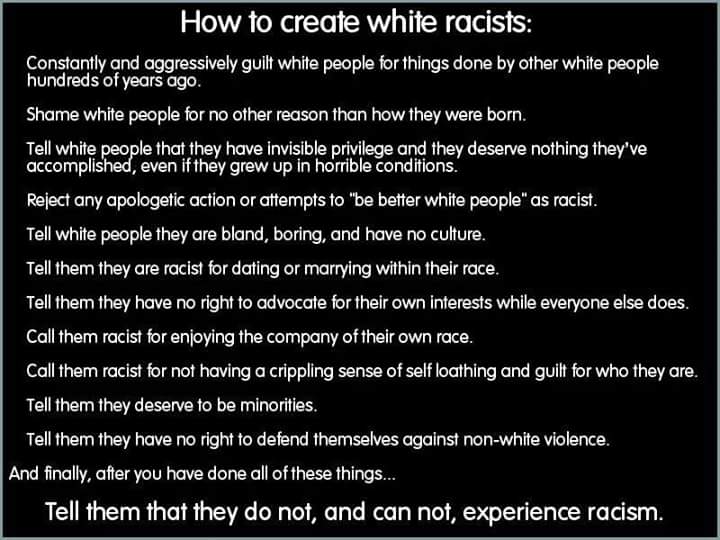 If whites don't stand up and fight back, my nieces and nephews and their children will be in concentration camps and ovens. It is blatant racist propaganda. Nazis.