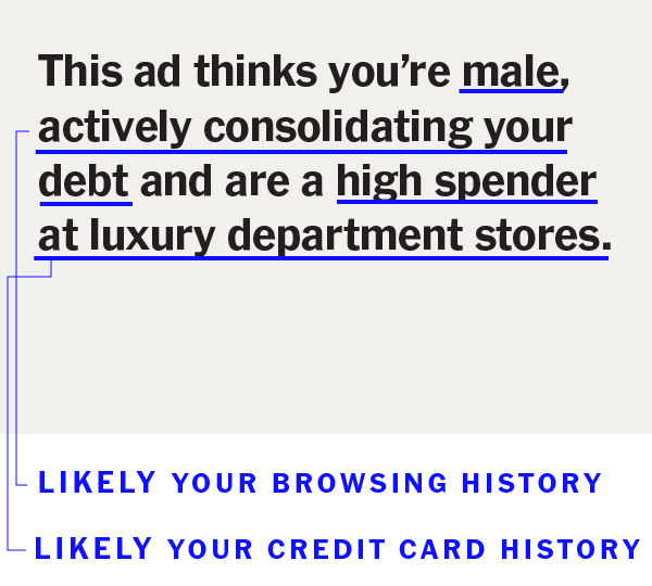 Nearly every ad you see is tailored just for you. How does that work? We sifted through 30,000 ad categories – from "people trying to lose weight" to "people consolidating their debt" – to find out. https://nyti.ms/2VhrWox pic.twitter.com/bEykHzhRb3