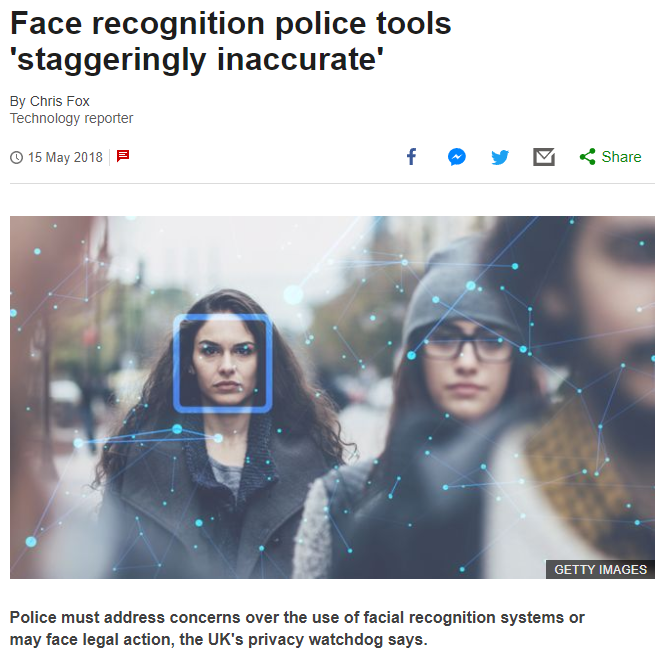 @nypdoneill : https://www.bbc.com/news/technology-44089161 … Face recognition police tools 'staggeringly inaccurate'pic.twitter.com/iMdUFujZie