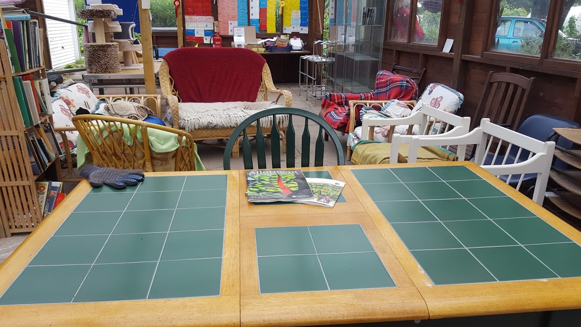 This is the veranda, it's where Dorothy, Barbara and I spend most of our time. We sleep here and we have cat beds as well as comfy chairs. In the daytime the humans come and spend time with us and have a cup of tea. It's a good life for cats and humans, we are very happy.pic.twitter.com/YWxlPWZcUA
