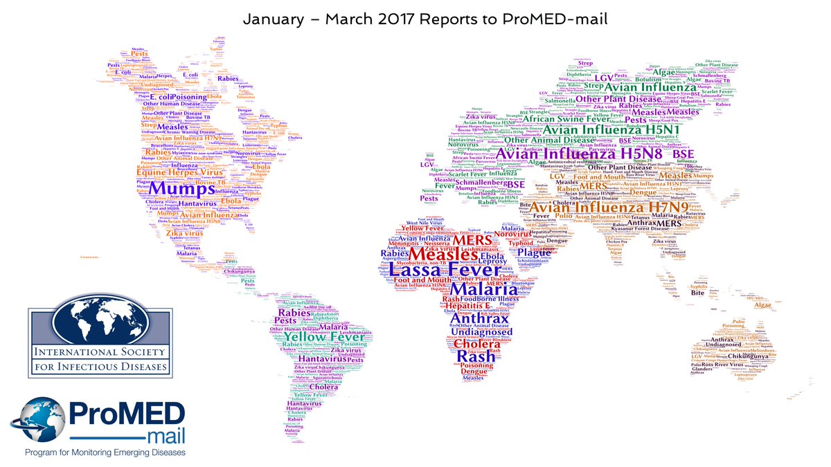 #ProMED's newest word cloud: Jan-Mar 2017! Word size and placement = # posts on the topic in the region, not in a specific country!pic.twitter.com/PqFbOkKQiJ