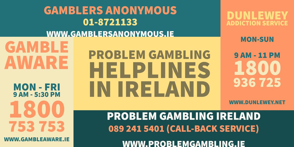 #Gambling Helpline services in Ireland. http://www.problemgambling.ie/blog/our-pilot-weekend-helpline-service-comes-to-an-end …pic.twitter.com/uZc8tKWD5P