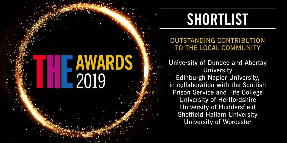 #THEAwards 2019! Good luck to all of those shortlisted@dundeeuni@AbertayUni@EdinburghNapier@UniofHerts@HuddersfieldUni@sheffhallamuni@worcester_uni. Full shortlist here: https://bit.ly/2KU1pGC pic.twitter.com/J23IQ8OhQV