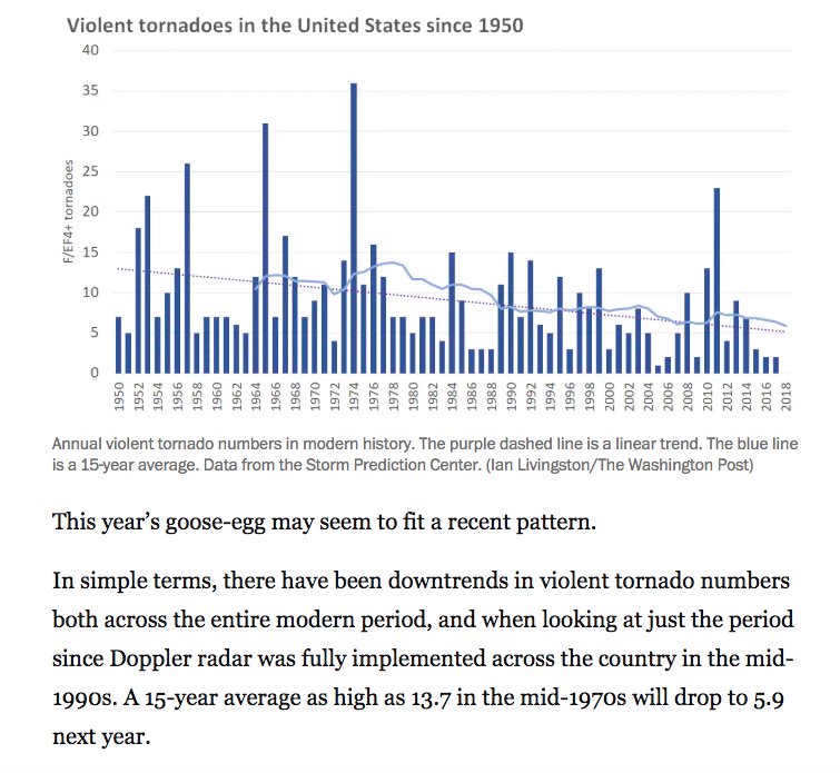 It's official. In 2018, the US had the fewest tornado deaths (10) since 1875 https://www.usatoday.com/story/news/nation/2018/12/28/tornadoes-set-record-lows-2018-only-10-deaths-us/2431360002/ …