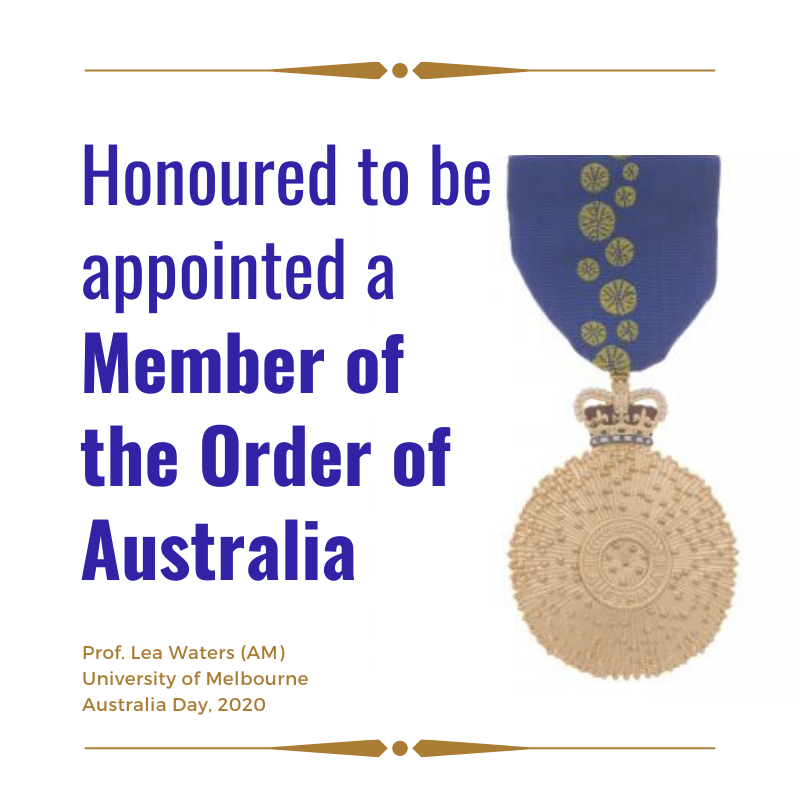 @ProfLeaWaters appointed a Member (AM) in the General Division of the Order of Australia “for significant service to education, and to psychology” in the Australia