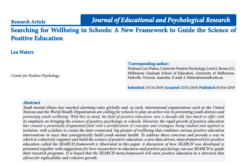 #Wellbeing in Schools: A New Framework to Guide the Science of#PositiveEducation'#SEARCH#PosEd Read it here: https://bit.ly/2tcnElE pic.twitter.com/Vf5RWXXLwp