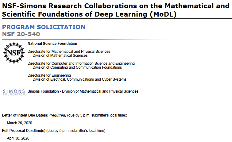 NSF's Division of Mathematical Sciences in collaboration with the Simons Foundation has just announced a new $20M funding opportunity on the Mathematical and Scientific Foundations of Deep Learning. Learn more about it at https://lnkd.in/ew34jBf
