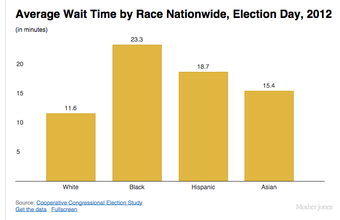 Upsetting new report: Black voters wait twice as long as white voters to cast their ballots: http://slate.me/1yVTWIW pic.twitter.com/1yLr9aEweG