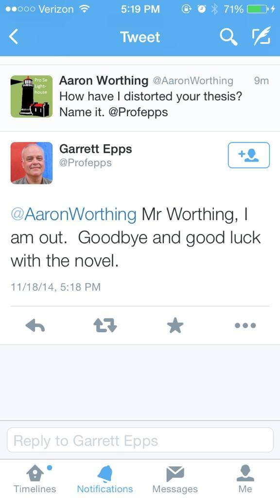 @AaronWorthing When dust settles, I'd enjoy hearing about your novel. I've written two.) But twitter leads to distortions like yours. -