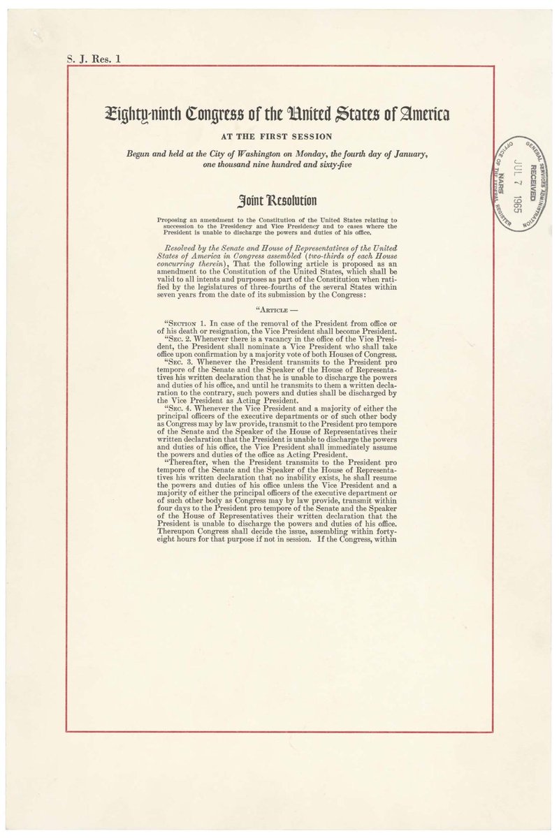 The 25th Amendment was ratified #OTD in 1967, clarifying the procedures for the succession to the Presidency.pic.twitter.com/x6LwAcBh5o