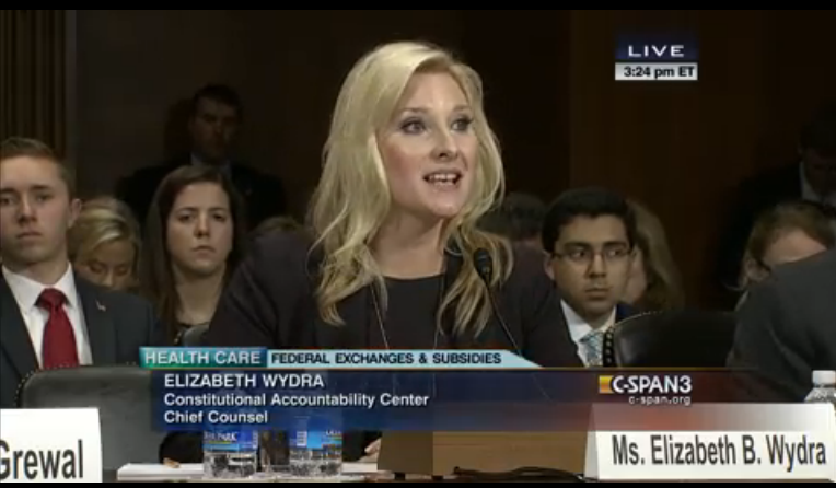 .@ElizabethWydra to @tedcruz: "I must take issue with the premise of today’s hearing" http://www.c-span.org/video/?326390-1/hearing-affordable-care-act-subsidy&live … #Kingpic.twitter.com/Igs49uM1Ym