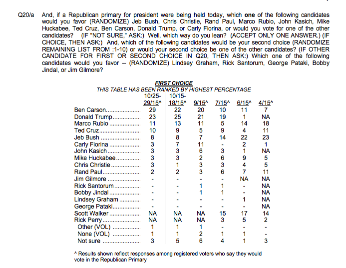 The NBC/WSJ poll just stopped asking about Jindal, Santorum, Graham, Pataki & Gilmore. http://bit.ly/1NTLIcx  pic.twitter.com/Ax9bz3ZzlG