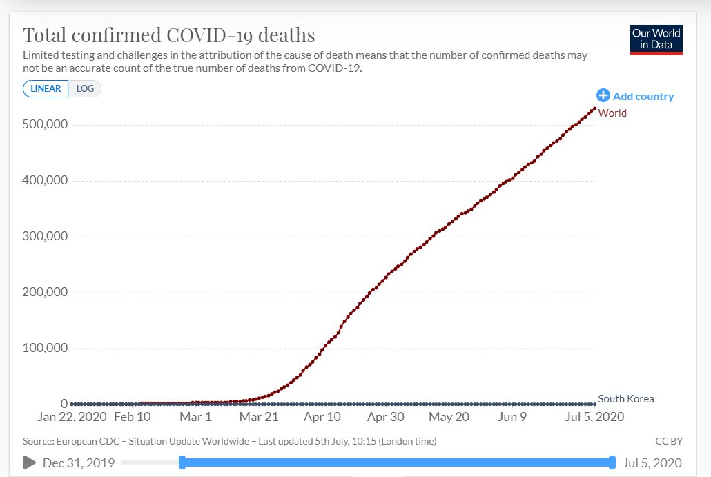 Speaking of South Korea, they made HCQ standard of care from the beginning, you want to see a flat curve? Have a gander at the deaths per million chart, South Korea as compared with the world. I wish my sheets were this flat.pic.twitter.com/Nww0sKYiHW