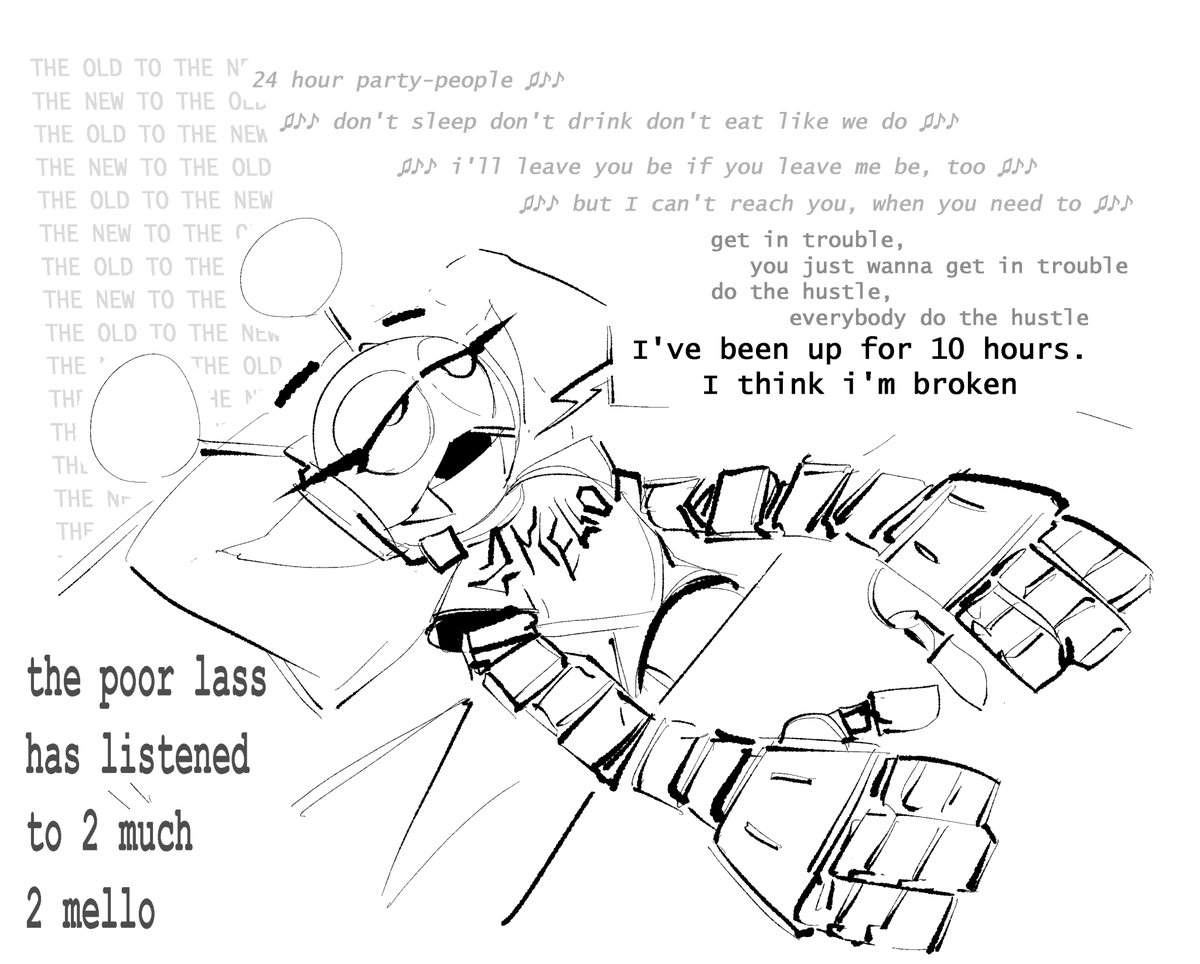Now that I've finally slain the monster that was a Single God Damn Action Panel, I'm kinda' thinking about taking the rest of the night (my day) off. Gotta' rest my shoulder up. It's... it's not happy w/ my decision to start drawing earlier today. o.o