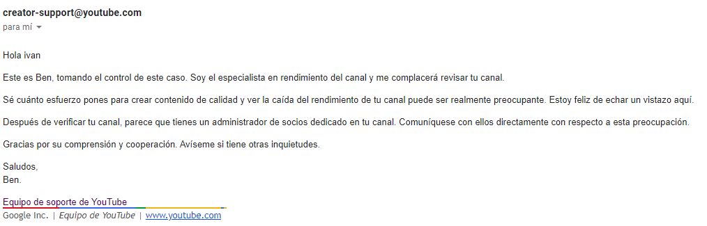 Desde el 1 de septiembre las visitas han caído un 60% y aunque he subido un vídeo a diario, las visitas no han parado de caer. Ayer contacte con el soporte,y me dijeron que tenían que revisar mi casa y que me contactarían por mail.Hoy dos días después recibo esto @teamyoutubepic.twitter.com/PfF3X6O8zP
