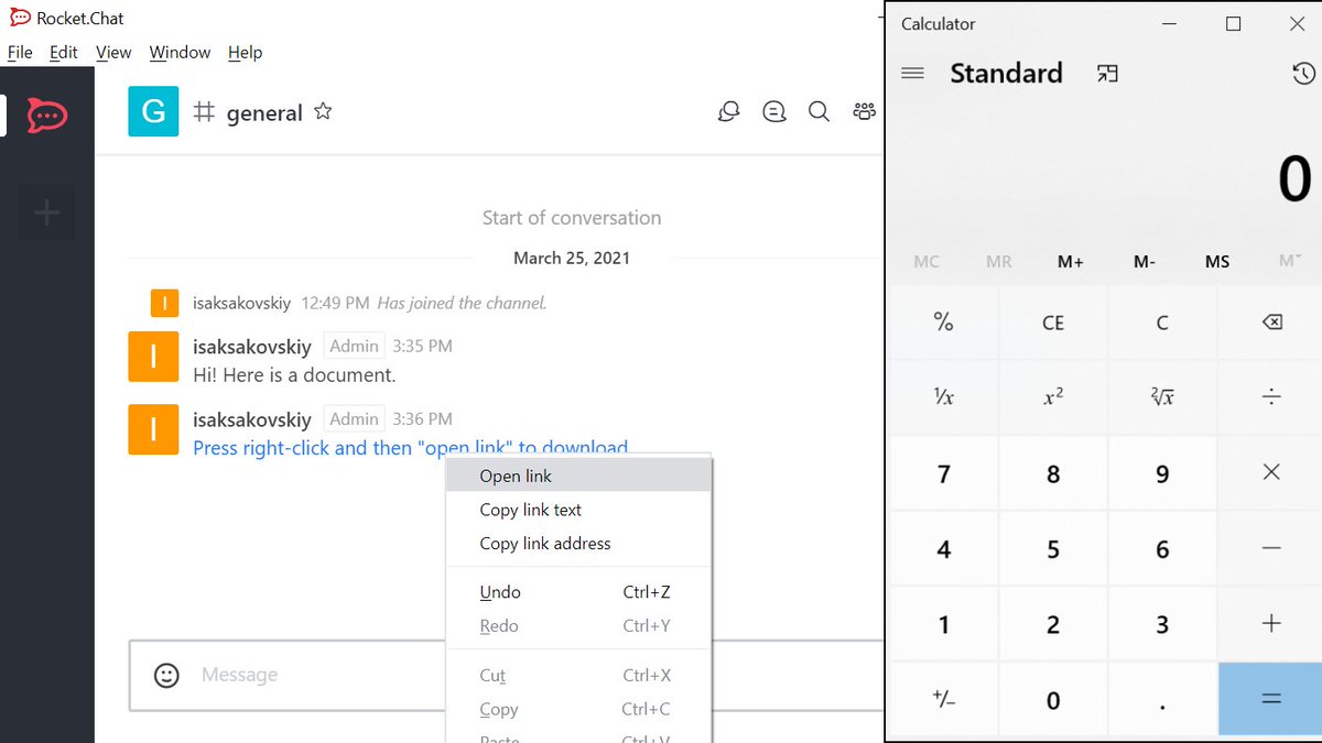 http://Rocket.Chat fixed a persistent XSS found by our researcher Igor Sak-Sakovskiy. The vulnerability was triggered by sending a text message, resulting in an arbitrary file read or RCE on the recipient's desktop system. https://hackerone.com/reports/1014459 pic.twitter.com/vfFHCGnFiR