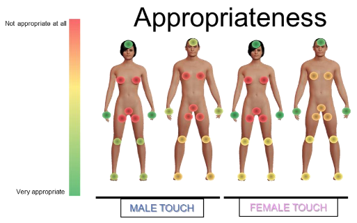 "people react to their avatar being caressed on taboo body parts..induce life-like sensations..Heterosexual men [& lesbians] rated female avatar’s touch more appropriate..gay men & heterosexual women rated female & male avatar touches equally appropriate" https://psyarxiv.com/dkzj5/ pic.twitter.com/bHW7N2EDrA