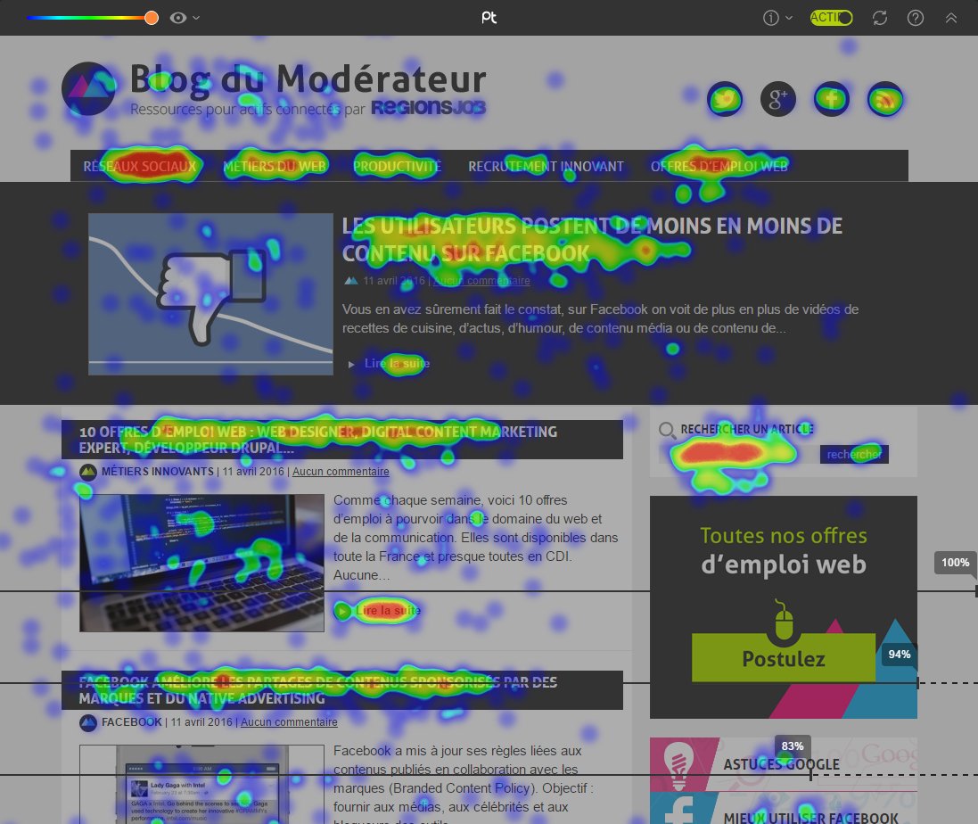 Test : Ptengine, des heatmaps pour analyser le comportement des internautes sur son site web http://www.blogdumoderateur.com/test-ptengine/ via