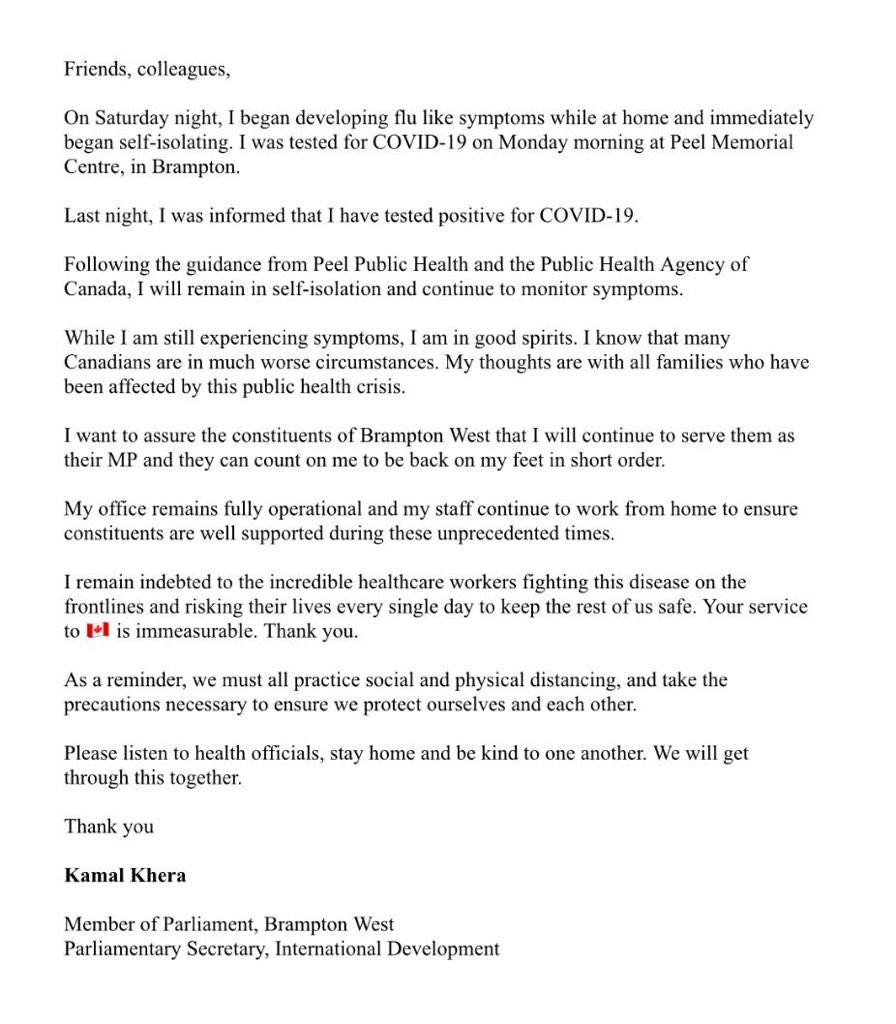 A personal update from me. Thank you all for your support. #COVID19pic.twitter.com/GoJKKRjKcZ
